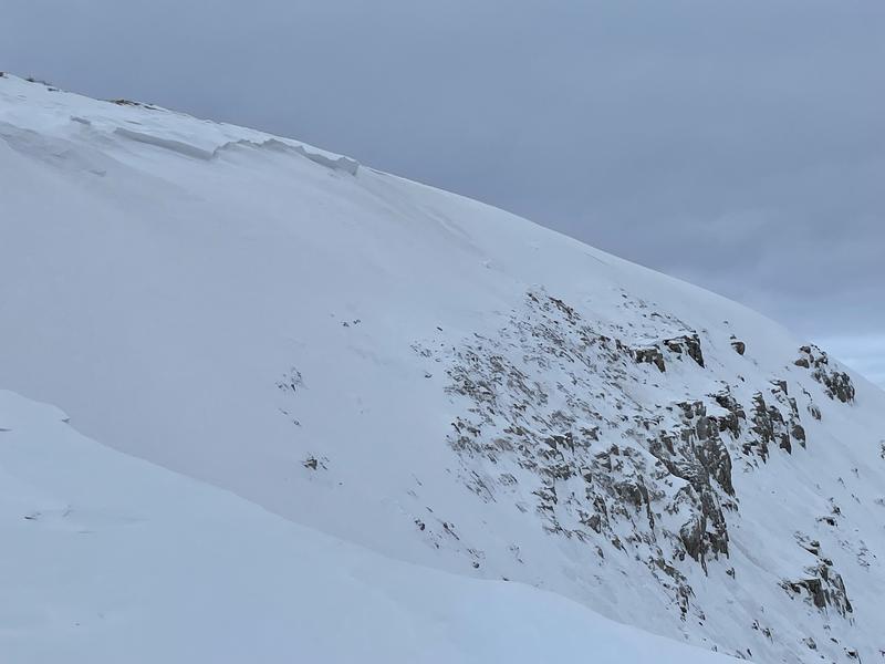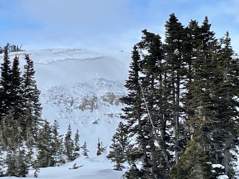 An observer texted us these pictures of a natural avalanche that likely occurred early Monday morning (12/13) with a significant increase in south winds overnight.