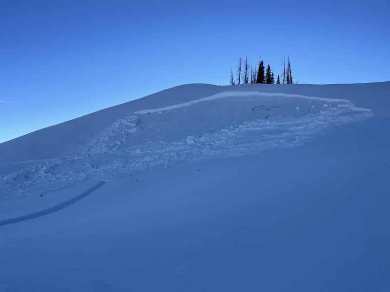 This avalanche occurred sometime between 11am and 4pm. It appeared to be snowmobile triggered based on the tracks the were buried by the debirs pile.