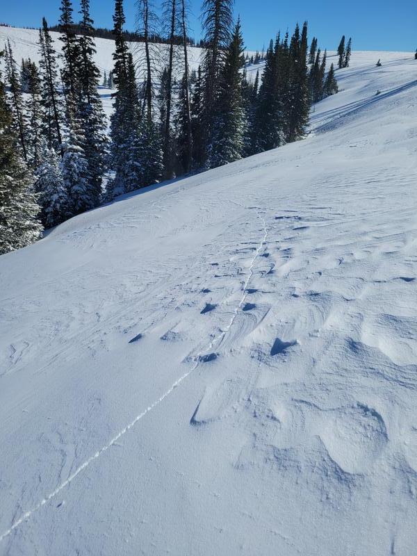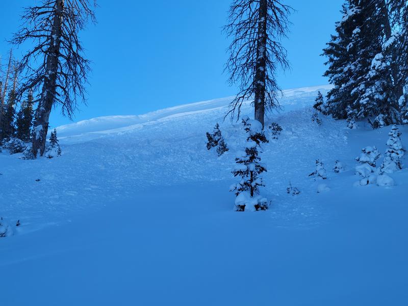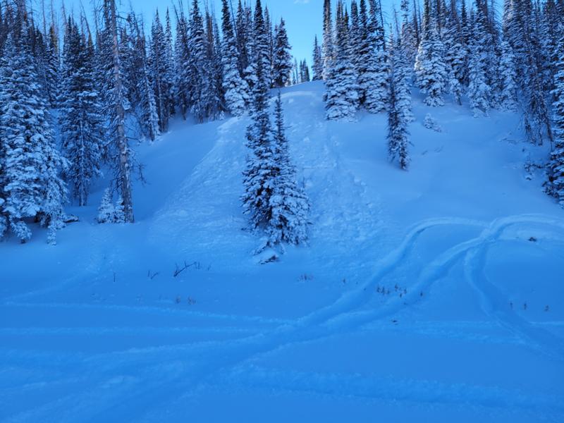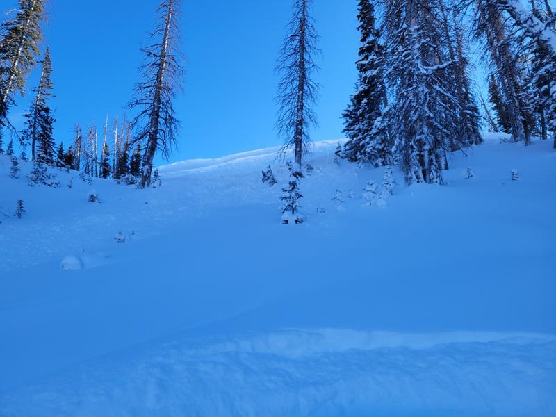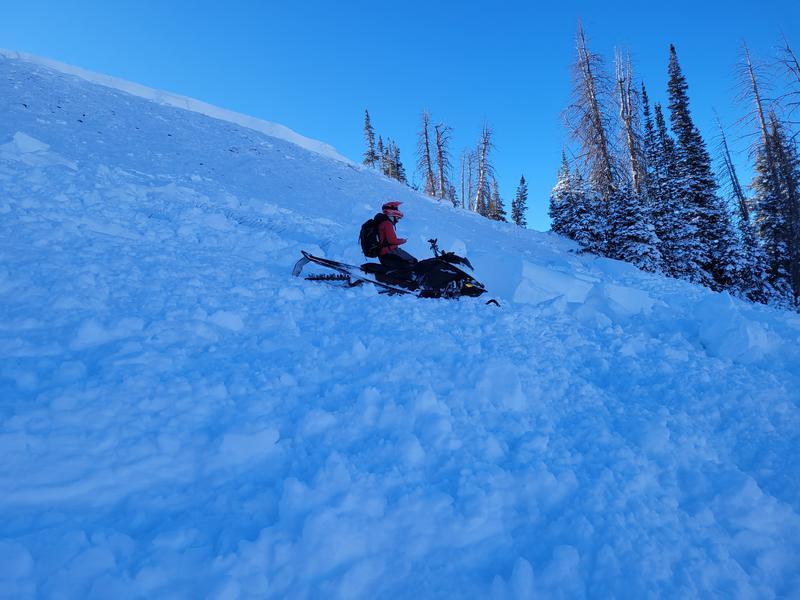 Snowmobiling out of Mill Hollow we noticed this ridge line around Bald Knoll that had multiple avalanches spanning the majority of the ridge. We came to inspect and believe that they where remotely triggered from snowmobilers below the slope, the avalanches appeared very fresh.