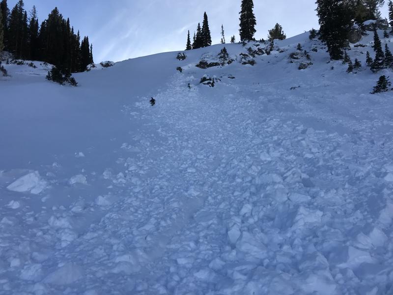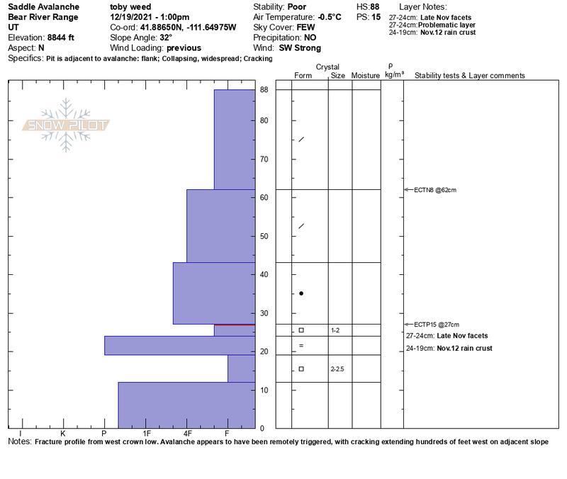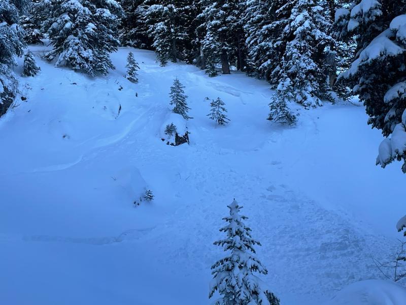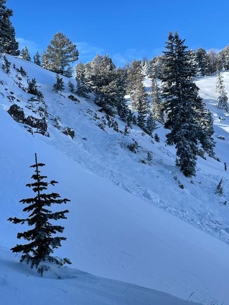 I went up to the site on 12/19. Sure enough, the avalanche had failed on a buried persistent weak layer of sugary faceted snow above the Nov.12 rain/rime-crust.