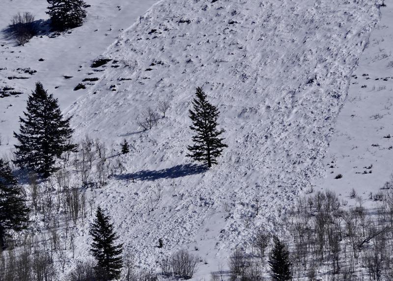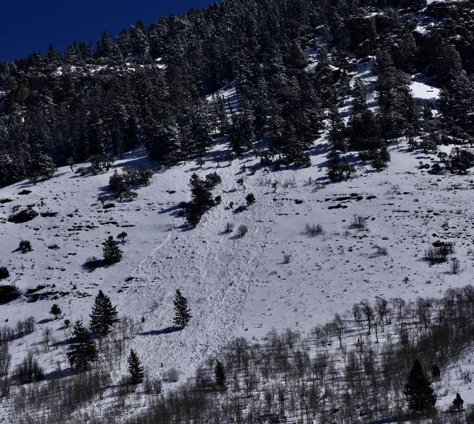 Saw this little wet slide from the highway today as we were headed up to ride the Beav. Looked like it ran a bit but didn't leave much for a debris pile. We also noticed many of the temple chutes had slid out today or yesterday also.
