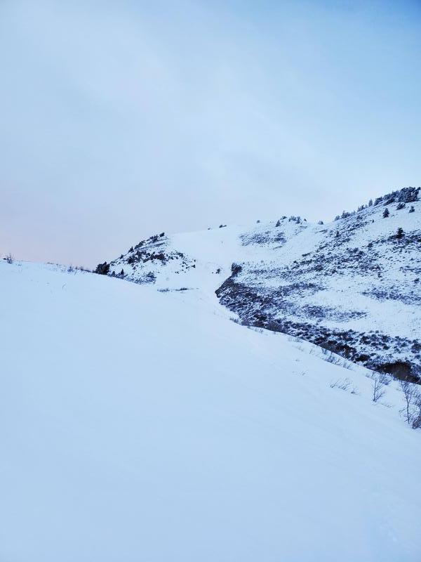Our party of three did not observe any signs of instability on our ascent to a sub- ridge line in the southern Wellsvilles. Two of us had done this exact tour earlier in the year and did not observe any notable changes in conditions from our last outing. Everyone was aware of the planned route and comfortable accepting the risk it presented. We primarily wanted to avoid the persistent weak layer by sticking to south and east aspects.