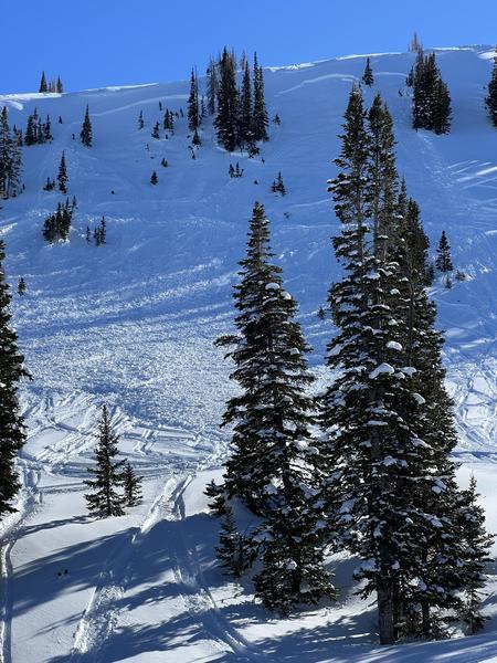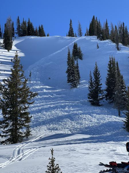 We were riding over near the warming hut and heard a loud bang. We went to investigate and found a few different avalanches around Humpy Peak. We did a quick search just to make sure no one was buried in any of them. They look to have all been triggered by snowmobilers.