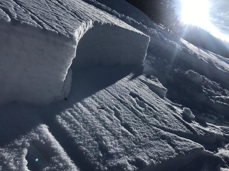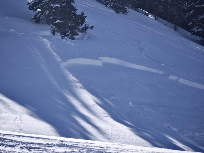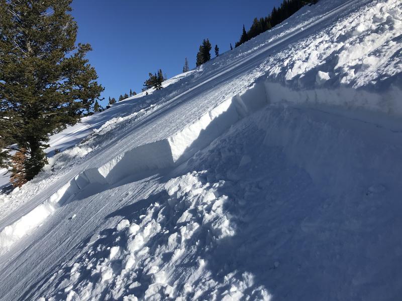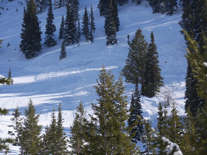 A group of 8 skiers were skiing the Millville Face, a steep N facing slope. They knew the danger and were using safe travel protocols. A skier triggered one small avalanche and then another skier triggered another small avalanche. At some point during their lapping, one party member waiting at the bottom relayed to the descending skier to ski fast through the lower part as there was a steep rollover. The skier descended and moved quickly through the suspect slope and arrived at the pickup point. Unbeknownst to him, he had triggered a fairly sizeable avalanche. The party decided it was time to go elsewhere for the day.