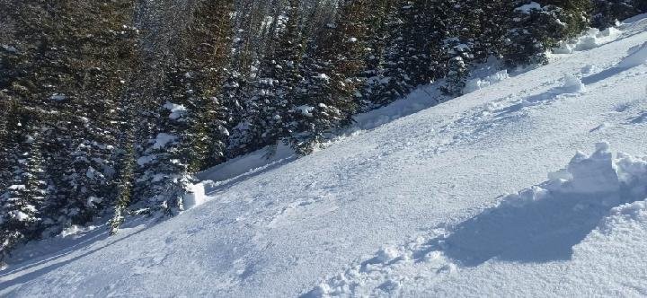 This remotely triggered slide breaking 2' deep and about 300' wide was initiated from about 40' away while a rider descended a low angle, 30 degree, north facing slope. This a go-to safe slope in Weber Canyon and the riders were doing everything right. However, a remotely triggered avalanche speaks to the tricky nature of our snowpack setup.
