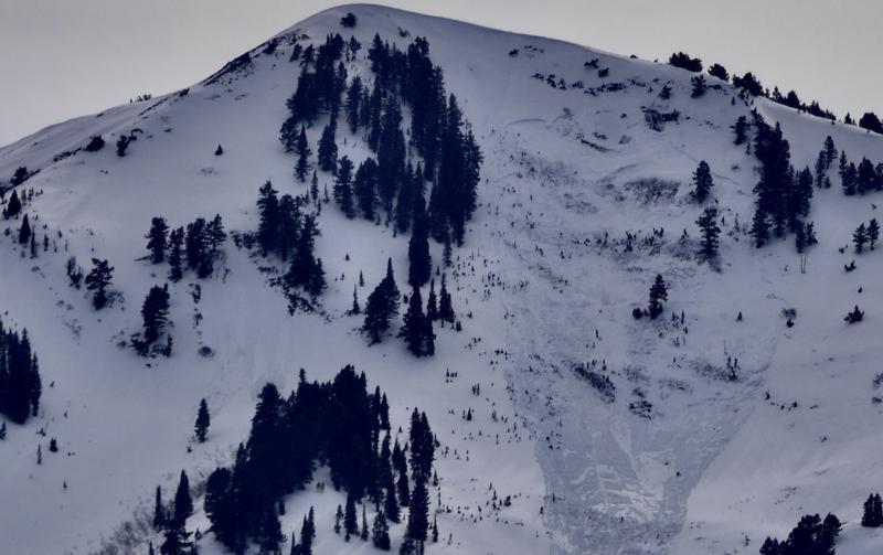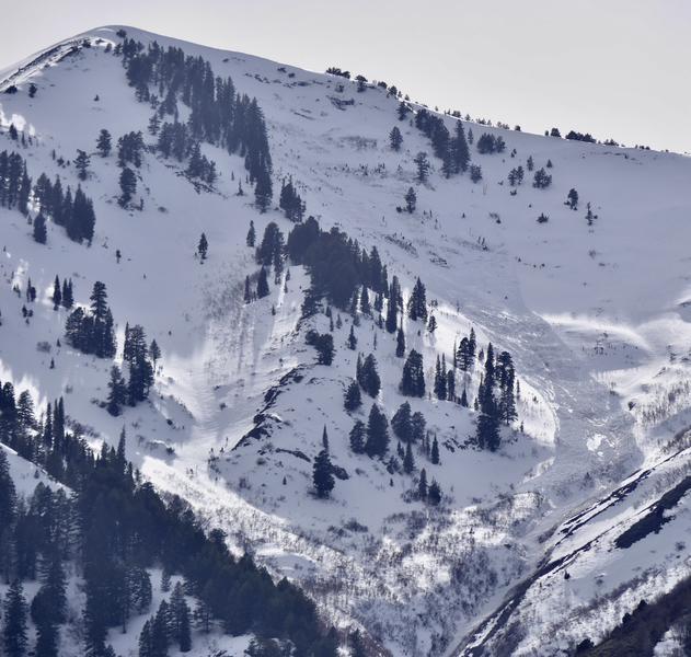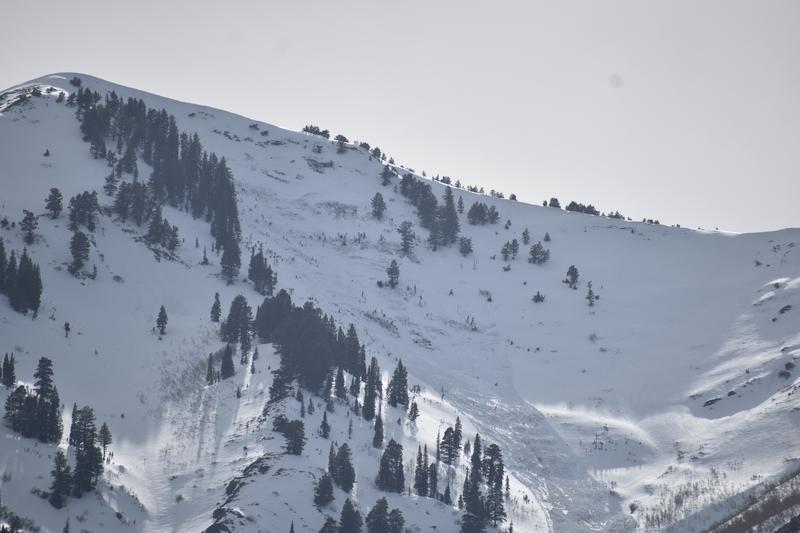 One of a handful of sizable natural avalanches that occurred during the midday heat in the Wellsville Mountain Wilderness