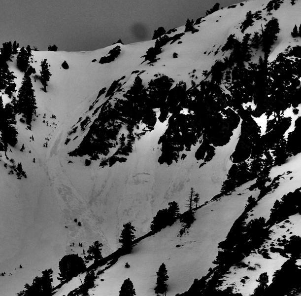 Two wet avalanches in Upper Pine Canyon, one a small wet slab, occurred sometime between noon 3/27 and 2pm 3/28.