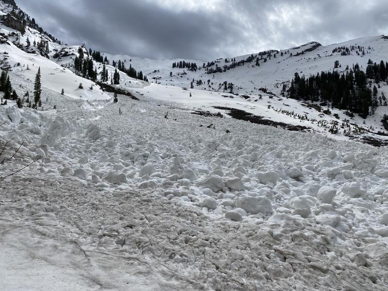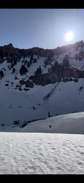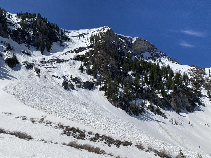 We found several avalanches on north facing slopes below Cherry Peak. The largest path appears to have started at ~9000ft, with the debris terminating at 7,500ft.