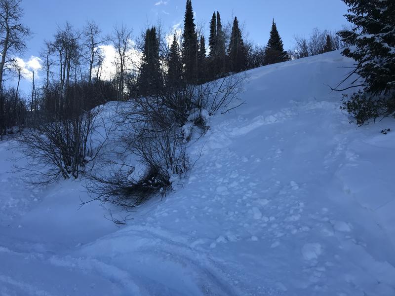 Three separate pockets of soft slab released, all told around 150' wide. ~1' crown included two obvious storm layers