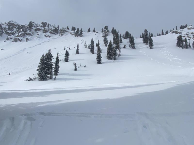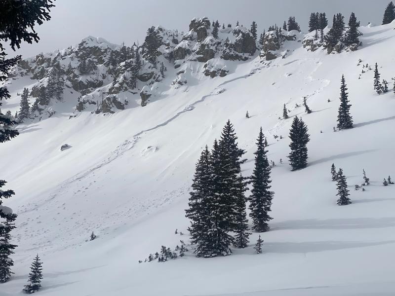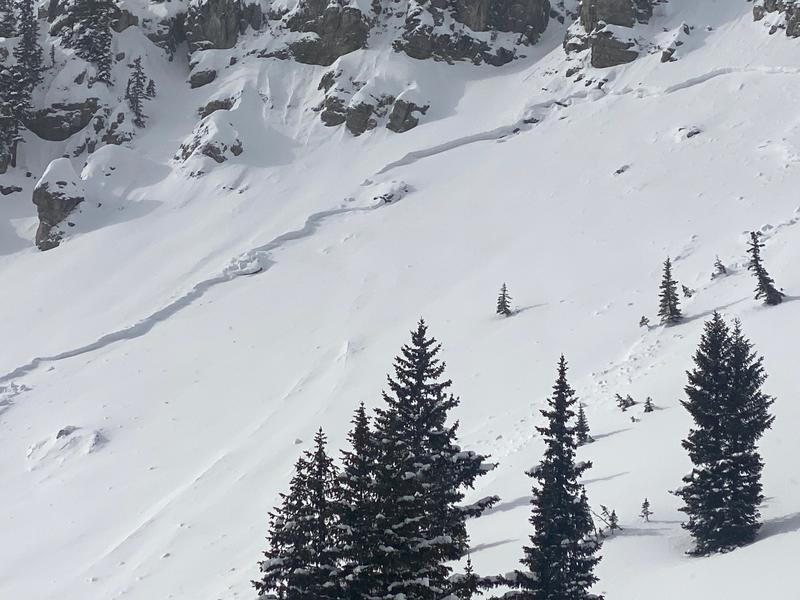Strong winds were loading slopes near the ridges in this area. The avalanche was likely a natural from wind loading, but possibly sympathetically released from some adjacent ski tracks (see third photo).
