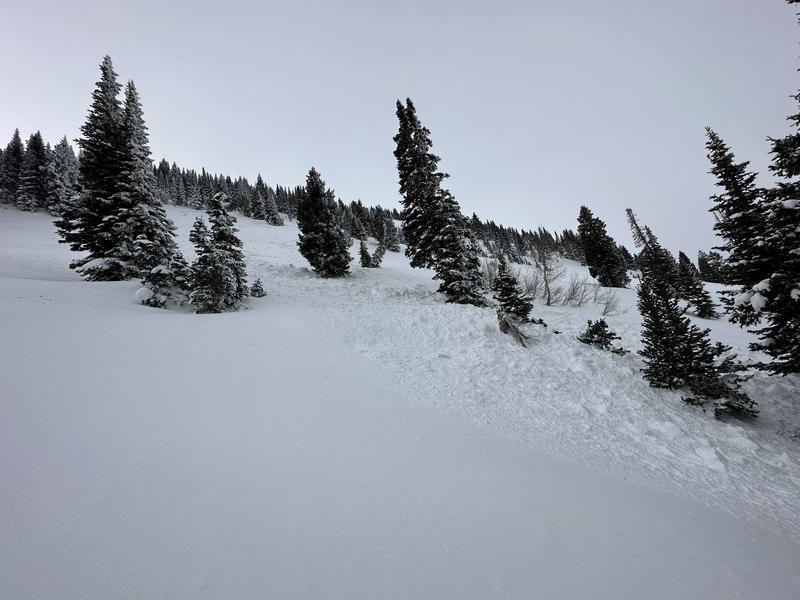 Skier triggered avalanche, was alerted on radio by spotter, and traversed out of danger...