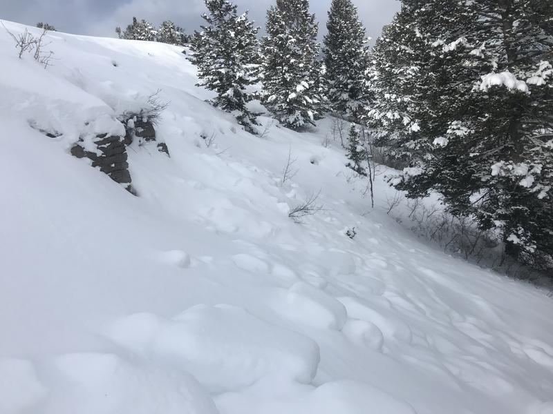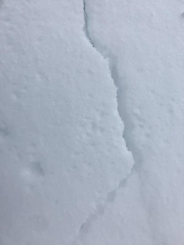 This one looks like it was triggered remotely since there were some snow bike tracks on the slope around 100' below. I have no idea when this occurred, but likely over the weekend after or during significant drifting from southerly winds.