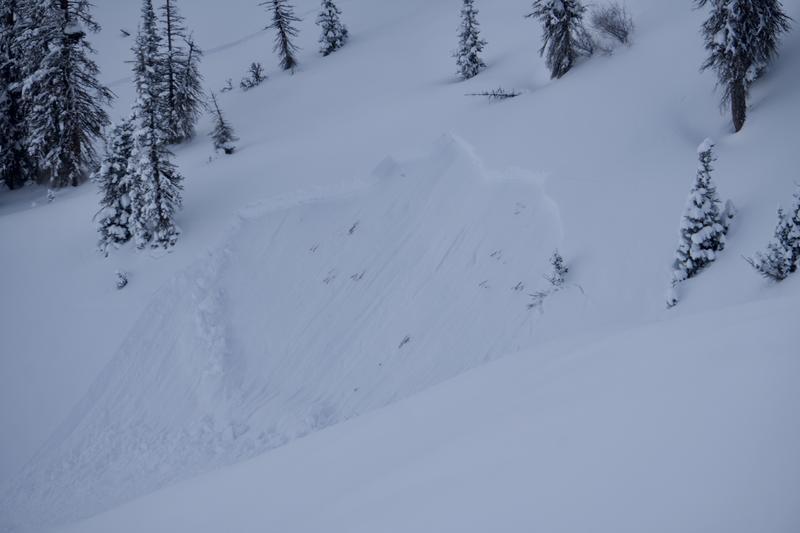 Saw two skiers ride down from the ridge on Ben Lomond. They were skiing the north/east facing terrain just to the south of Cutler Ridge. They remotely triggered this avalanche and another one as they went down. We weren't able to get a good look at either avalanche due to hang fire above. We saw them back on the skin track and they didn't know that they had triggered this avalanche and were going to go back and take another lap and a look at the slide. So maybe we'll get a more detailed observation.