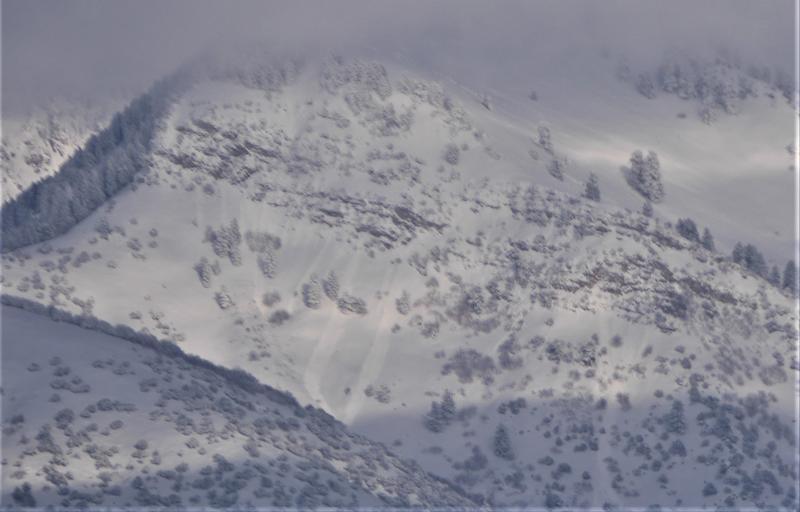 These recent natural long running new snow avalanches were visible from Cache Valley today.