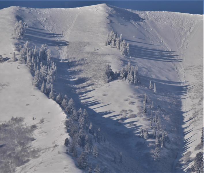 It finnally cleared up and we could see more recent natural avalanche activity in the Wellsville Range, including a couple in Old Logway Canyon that were probably caused by cornice falls.