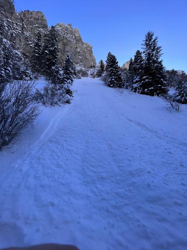 Continuing the trend of low elevation north facing slopes, this natural slide occurred on the north facing side of the canyon and ran all the way to the hiking trail. Looks to have been natural and started just below a small cliff band.