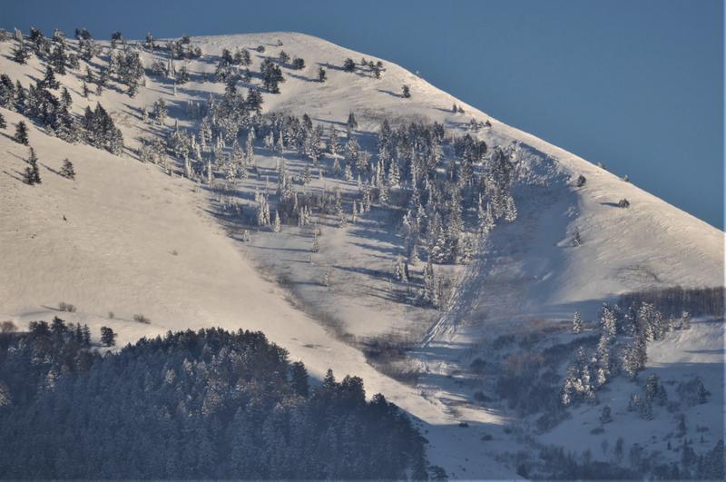 Observed this avalanche from town. Likely strong southwest winds overloaded Big Baldy's shoulder.