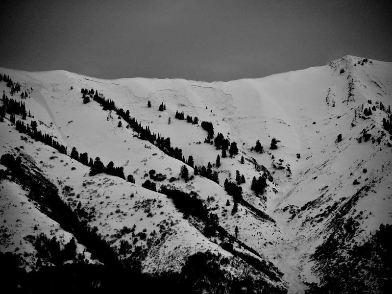 Large natural slab avalanches were apparent this morning in the Wellsville Mountain Wilderness above Mendon. Long running, destruactive avalanches that came all the way down to Maple Bench..