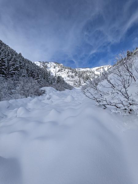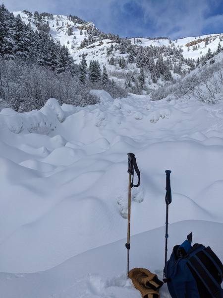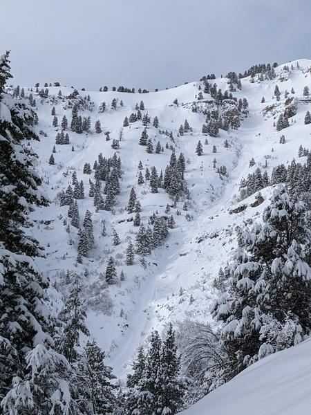Fairly large avalanche in the wood camp area. East facing slope. Debris 10-20 feet deep in areas. Hard to tell how wide the crown was because of recent snowfall covering the slope.