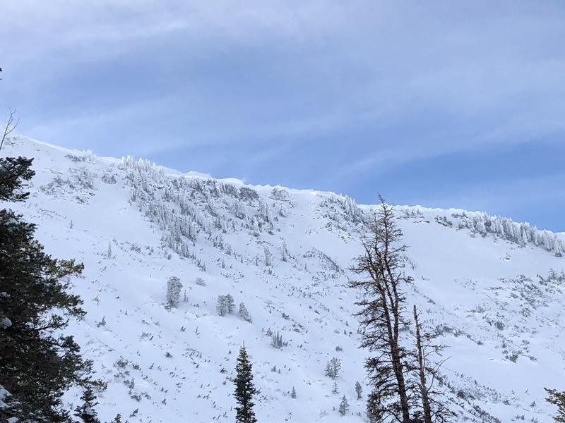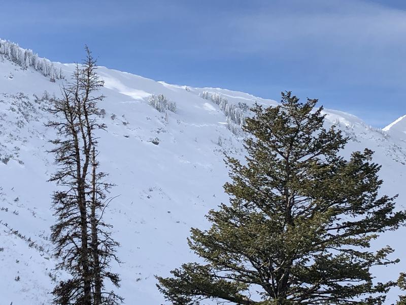 Appears that the whole Headwall above Cutler Creek went during that last storm. Went from near the East shoulder all the way almost to Willard Peak. I could see crowns all the way across both mid slope and near the top just below cornice line. Debris all over the place and it ripped a long ways down cutler creek, well below 7000 feet. [Forecaster comment: Additional photo submitted from Tyler.]