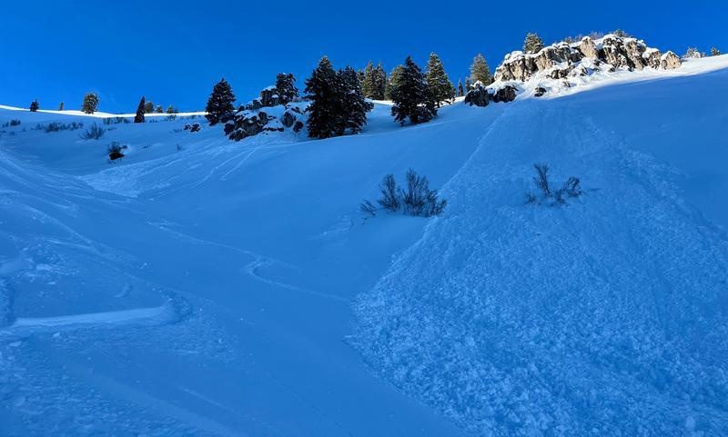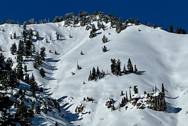 Noticed a couple natural loose wet avalanches that occurred while we were in the area this afternoon. There were three off Soucie's Ridge, One covered up some ski tracks from earlier in the day.