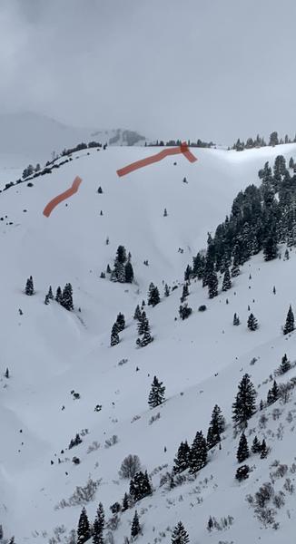 Noted three similar naturals in the 3rd Temptation, between 8500-8900', all soft slabs from extensive wind drifting from westerly winds.