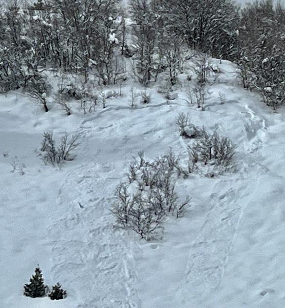 There were several small natural soft slab and loose avalanches apparent today in Logan Canyon. I could also see evidence of fairly widespread natural activity up in the Wood Camp area. Most other terrain I hoped to see today remained obscured by clouds and flat light.