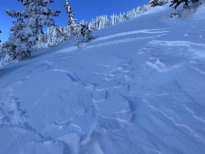 At around 10k feet on the way up cold fusion (skinning up ridge/trees looker's right of the line) we pulled out numerous small wind slabs. They were not quite deep enough to carry a person and were not particularly energetic, but at least one of them pulled out 15' above me. After seeing the activity we decided to ski down from that point. On the way down cold fusion we pulled out a couple even shallower wind slabs (4" maybe) and some long running sluffs.