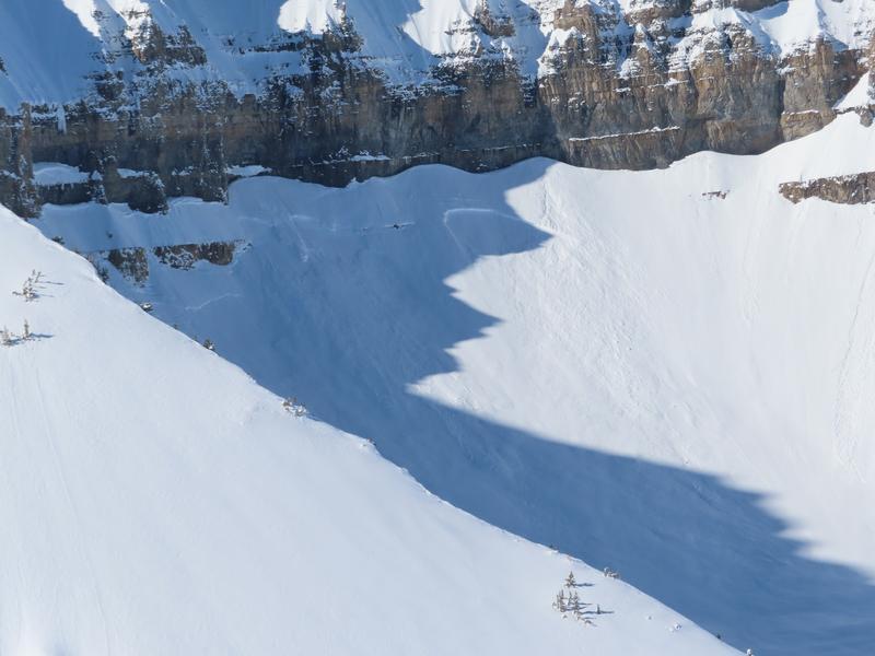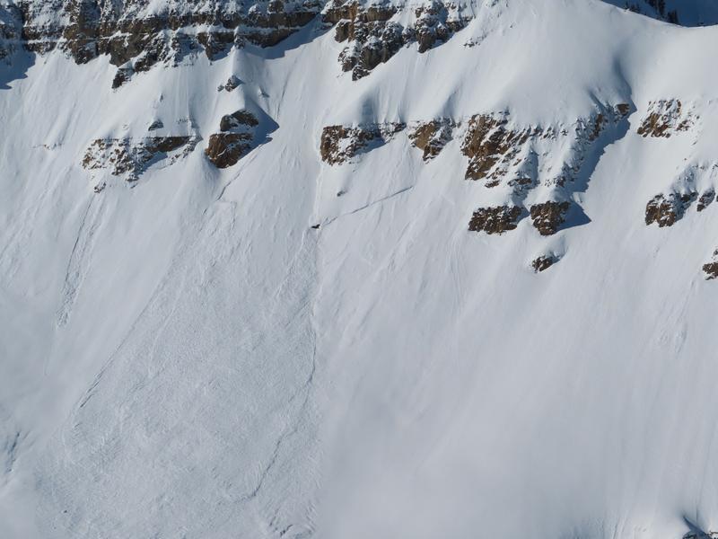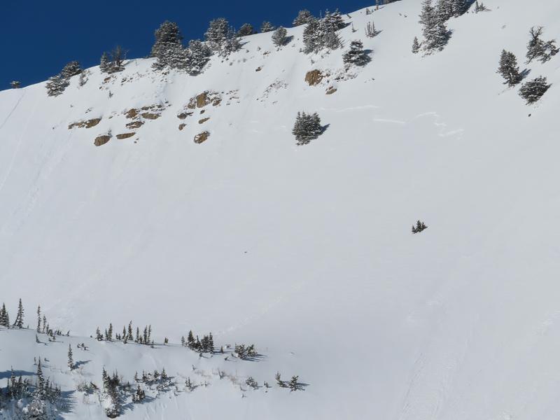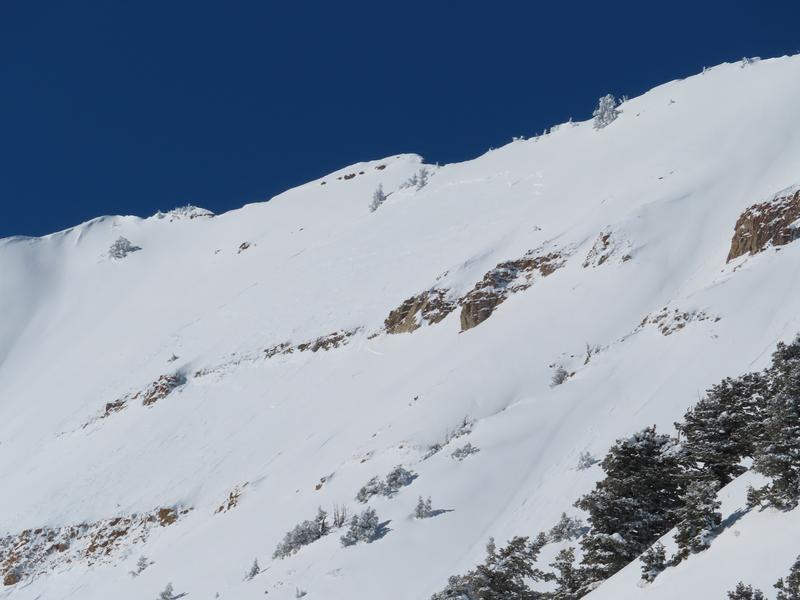 Two notable SS-N in Slide Canyon and Chablis from yesterday or the day before. Both on SE slopes between 10,300' and 9800' on 37-40deg slopes. Chablis ran to edge of upper bench, and Slide ran around 3,300' vert. Crowns were only 4-12" deep and 200'-300' wide. Both failed above a MF crust with cold dry stellers and some facets on the crust. The most notable thing was I felt two separate collapses as I skinned above the crown in Chablis. SE still seems like its trying to adjust!