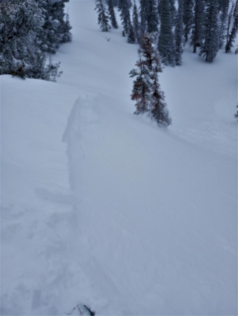 40 degree slope on the North edge of Bailey's on the saddle head wall - poking around to see what the slope/aspect at elevation was like. Was able to trigger a slab that broke in the top/new snow/wind deposition layer. Observed a secondary crack in the layer below, however it did not propagate. The resulting slide entrained some additional surface snow, but did not propagate into other layers, or adjacent slopes. Lots of wind and snow transport early in the day.