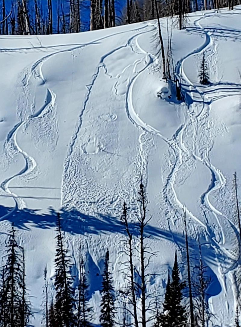We rode in the Northern Bear River Range today and found excellent riding conditions on the Northern half of the compass below 9000. The snow on the southern half of the compass was getting saturated by the time we left at around 2PM.