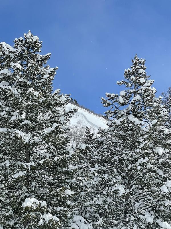 Just visible through the trees from Alpine Loop Rd (40.40806° N, 111.60309° W) around 11am.