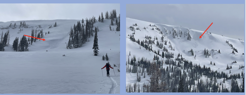 Not particularly deep or alarming, Andy and I noted a couple of pockety fresh drifts avalanching naturally in the wind zone