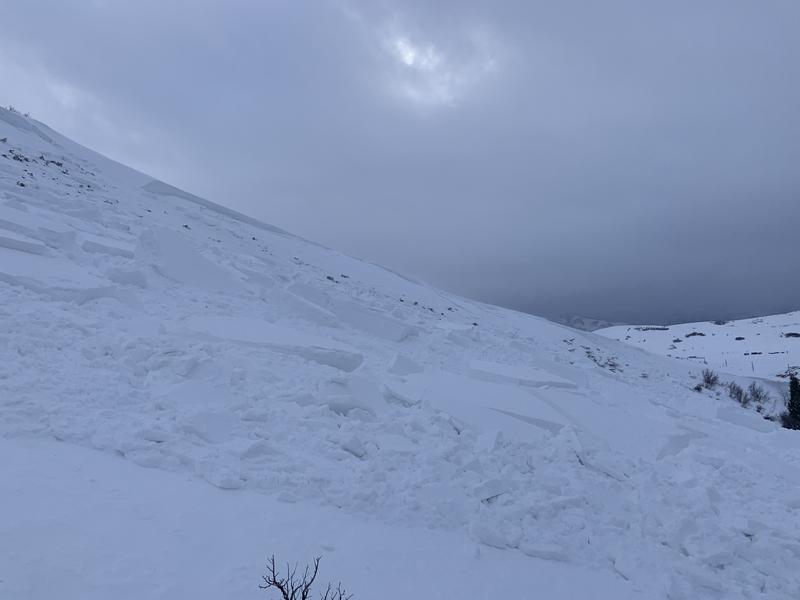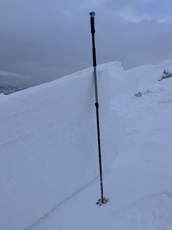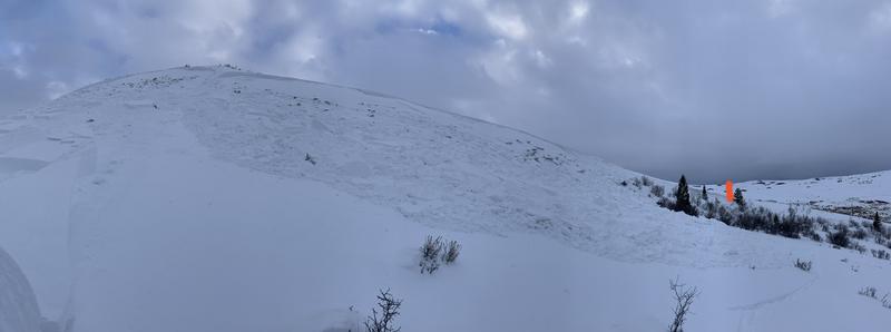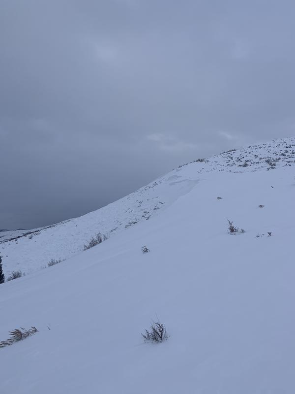 Skinning up the ridge line to the west of the "bowl" had a small crack shoot out and the ridge began to slide.