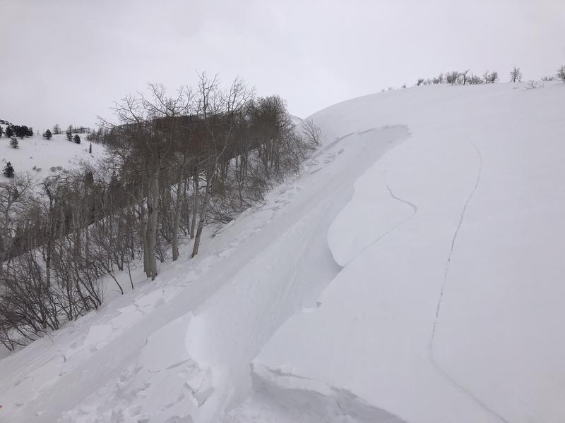 Moderate to strong winds gusting out of the south all day loading leeward aspects between 7800' & 9500'. Was able to trigger it by walking just a few feet out onto the slope and jumping. Ran 50' into the trees.