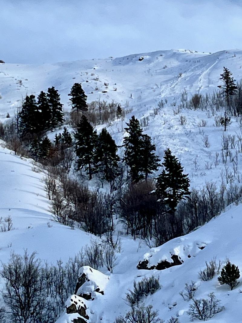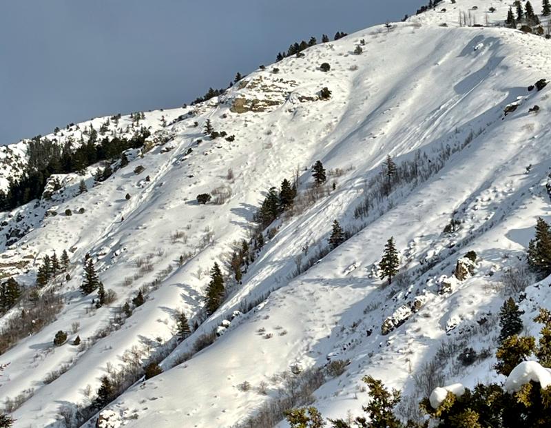 I observed a few fresh natural avalanches on drifted north facing slopes at lower elevations in the Canyon. Mouths and above the North Logan Bench. Probably of most concern was the one in the mouth of Green Canyon threatening the trailhead access road and where there have been a couple other natural avalanches in the last week or so.