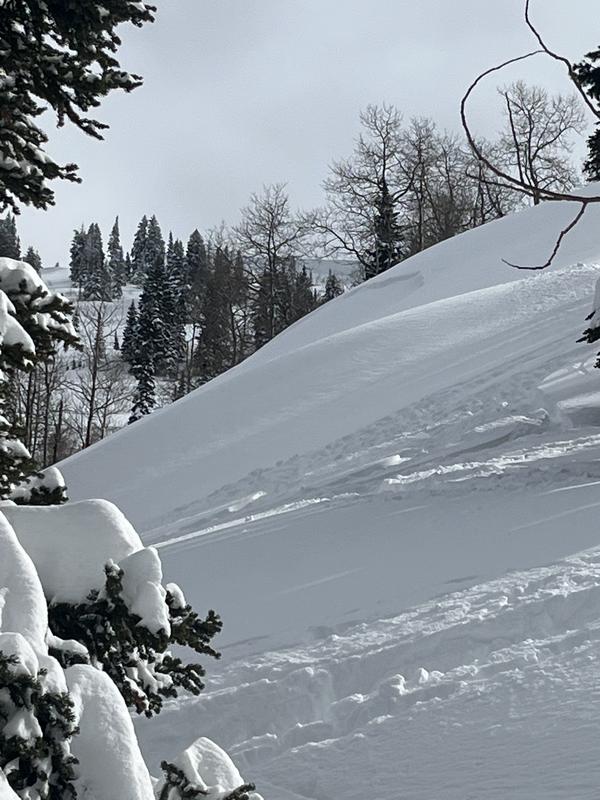 Lots of natural slides today with a some observed cracking. The size of the cornices on the ridge are humbling!