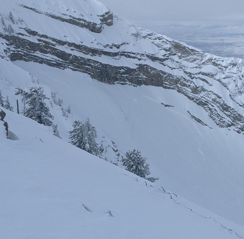 Guessing this ran during the recent periods of intense snowfall and wind over the weekend as it was slightly recovered by new snow. Might have initiated from snow pouring down from the cliffs above likely loading from the heavy SW winds. 6ft crown depth is an approximate guess at the deepest point.