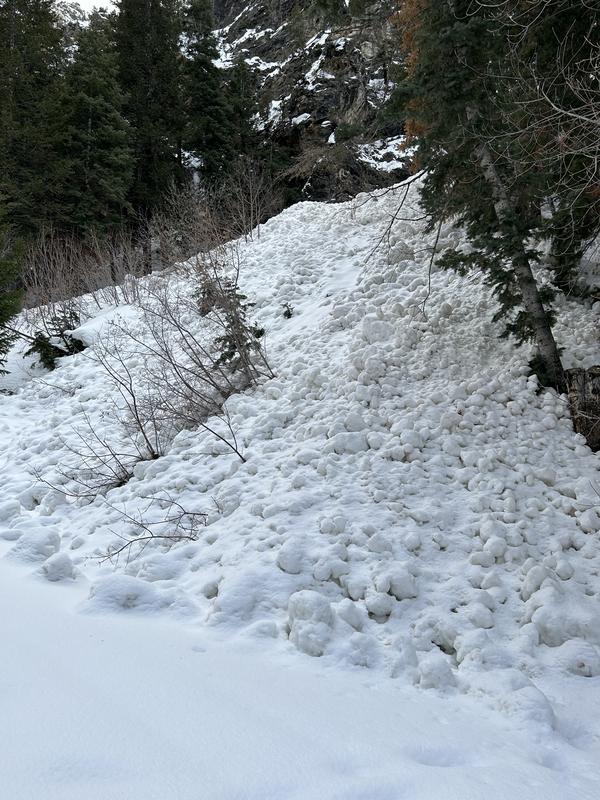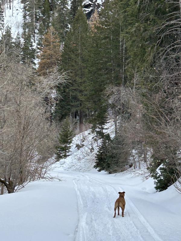 Every few minutes I would yell the dog’s name refusing to accept that he was likely dead. Finally at the final turn the dog came ripping around the corner. (It turns out the dog had been hit by an ice block in Maple Canyon earlier this season and most likely ran when he heard the sound of the first avalanche).