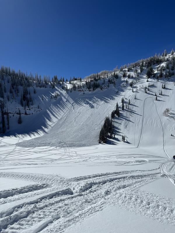 We came across this avalanche snowmobiling today and saw that other snowmobiles had decided to ride up the slope next to it, not super smart. Lots of volume in this slide.