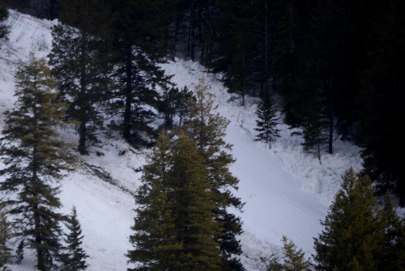 We observed this recent large natural wet avalanche in Logan Canyon from below on Hwy 89