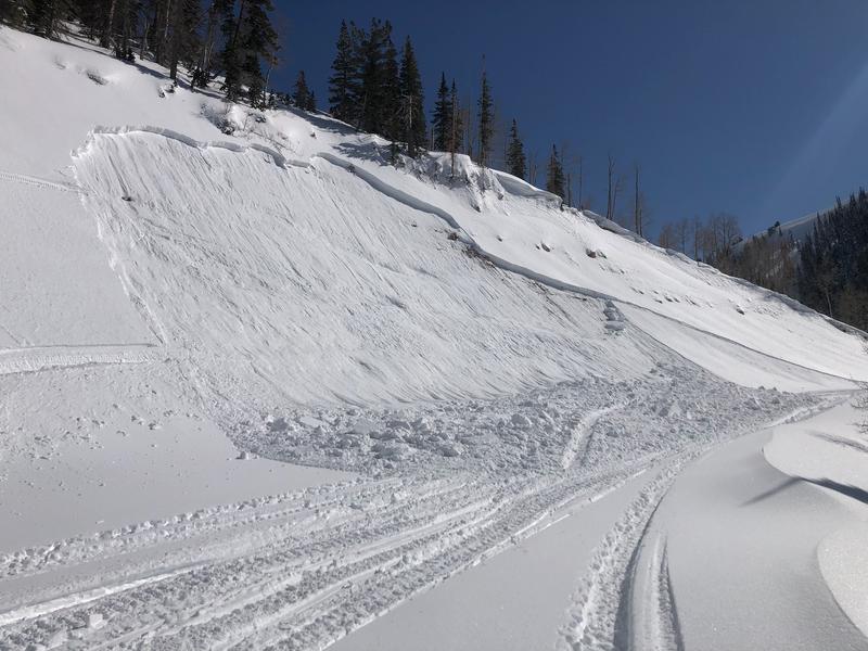 Forecaster Comments: This is the type of minor avalanche activity that should be expected during the spring season. Daytime heating of the snow can cause it to become unstable especially after recent new snow storms. It is not uncommon for the snowpack to be stable in the morning and then become unstable in the afternoon with daytime heating. It is wise to carefully assess what kind of terrain you're on in the afternoon and avoid steep slopes as they become damp or wet. Although this avalanche was inconsequential, if it had been on a slightly bigger slope or in a ravine or gully, the consequences would've been higher.