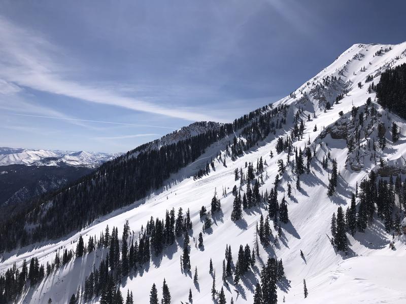 Multiple slide paths off the E face of Box Elder. Appeared to start just under the corniced ridgeline with a wind slab running above the rock bands lower down before stepping down and propagating 400'-600' down slope. Multiple slide paths went and the toe of the debris was probably 1500' down from the ridgeline into the gullies below. Hard to tell from the pics but impressive from where we were standing.