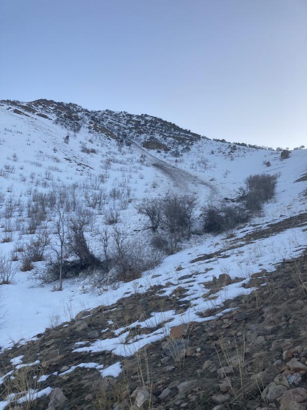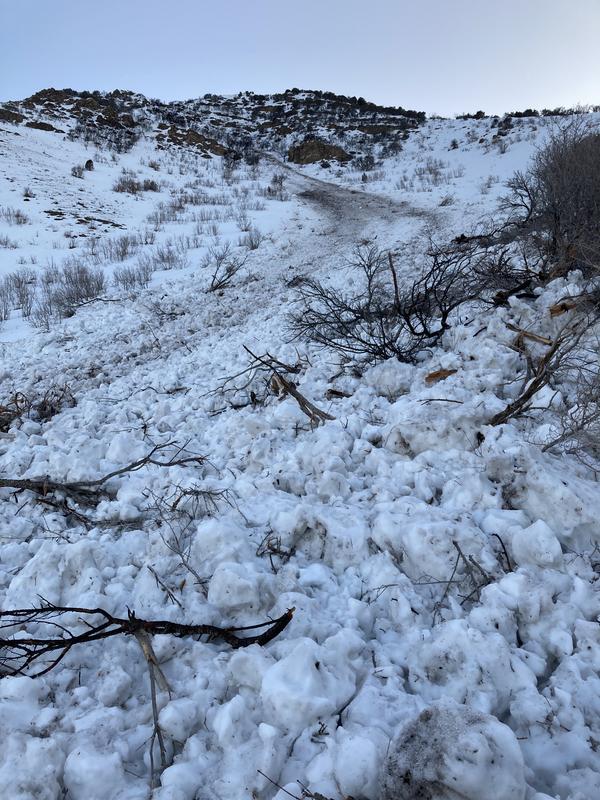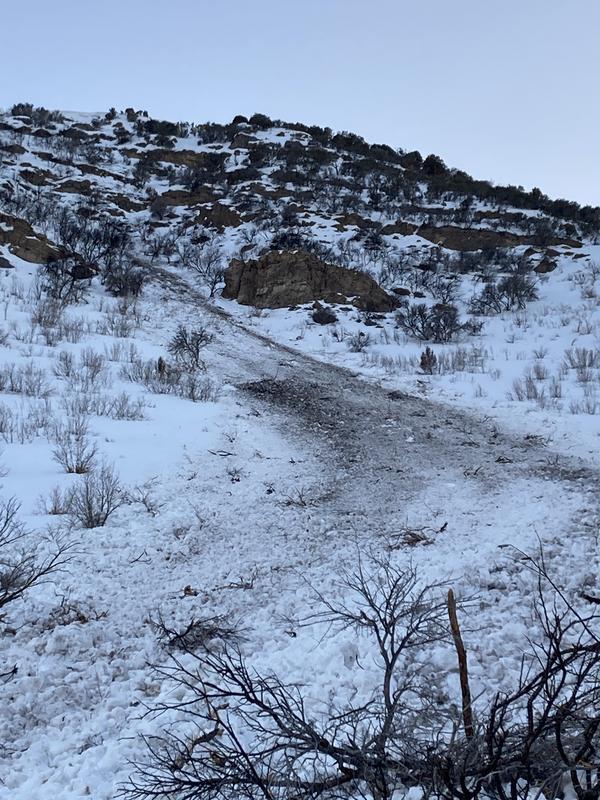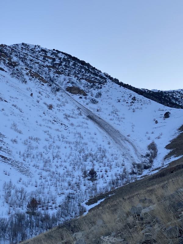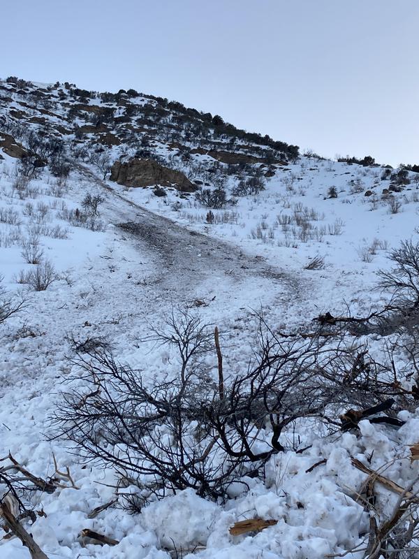 Appears to be a natural slide unless triggered by deer. No hikers or skiers in this canyon. Came down late Wednesday evening or early Thursday morning.