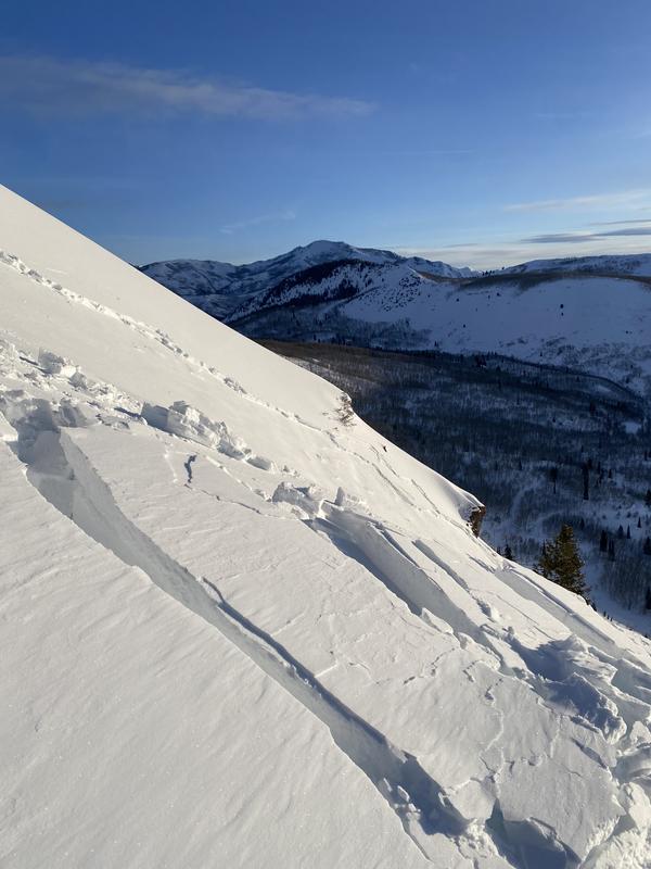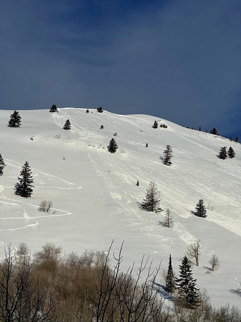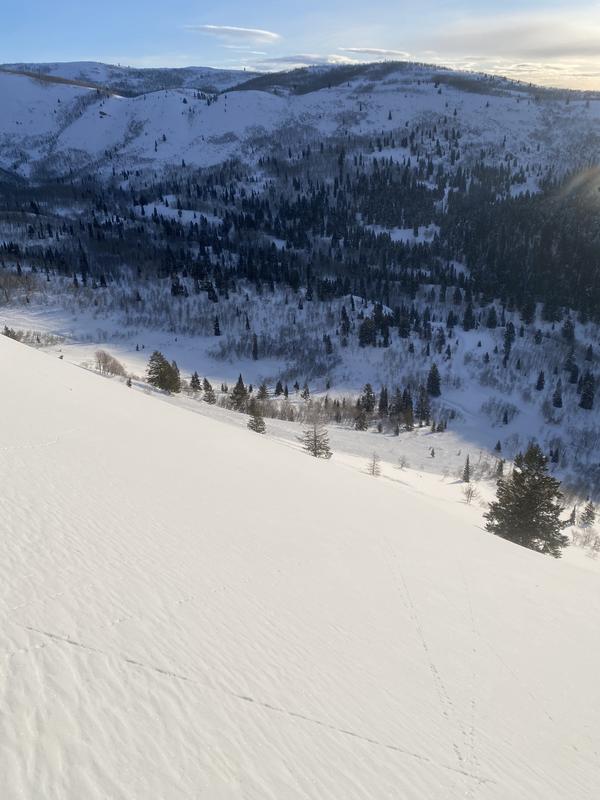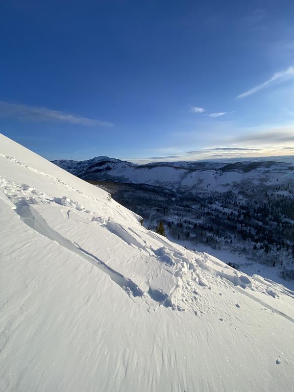 Me and a couple of buddies decided to try out "Pharaoh" today since Primrose looks pretty used up. We got up to the peak, Bob's Knob, at 7:30 AM, and checked the forecast for Provo that had just been released at 6:50. At our elevation and aspect, it was moderate so we were feeling ok about it. we rode the ridge heading south a little to get ready to drop in and the side of the mountain just went. Luckily none of us had gone down and no one was carried or buried. After that, we just rode the ridge as much as we could and then cut back on the slope where the gradient wasn't as steep.
