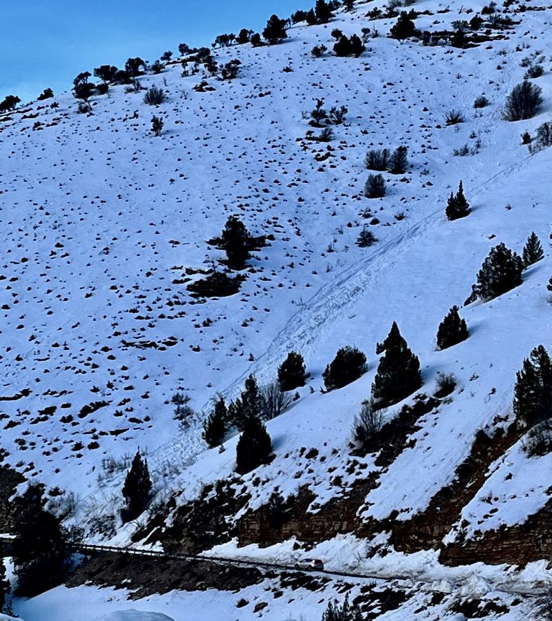 A natural wet loose avalanche crossed the inside lane of UT 89 in Logan Canyon in the Dugway at around 6:30 pm.