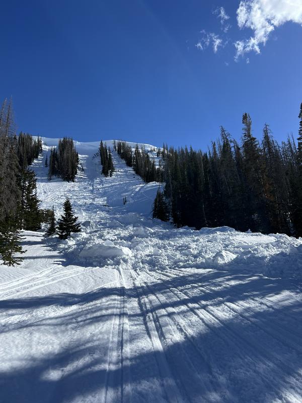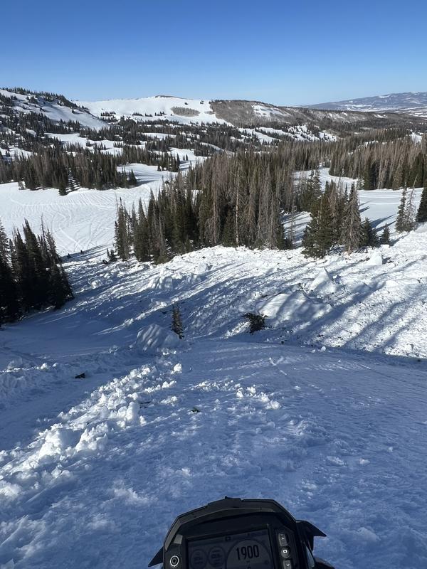 We rolled up onto this avalanche. It was located on the north side of the Super Bowl in Moffit basin. The avalanche looked like with was triggered by a large cornice break.