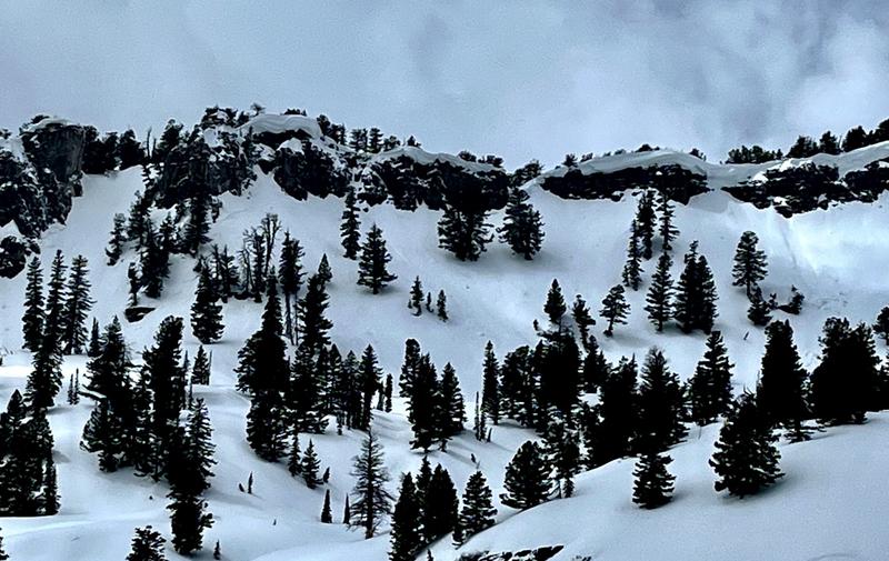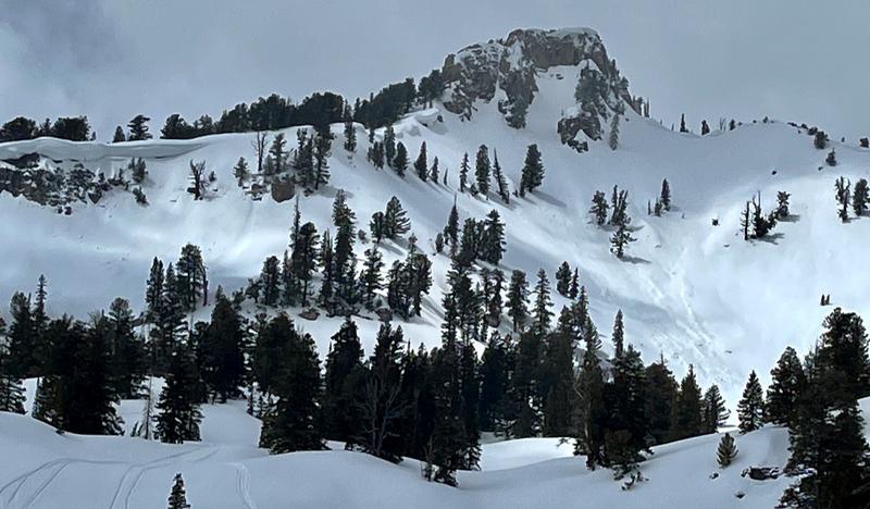 We could see evidence of a few recent natural avalanches of wind-drifted snow that came off the cliffs of Magog and under the cornices of it's south ridge.