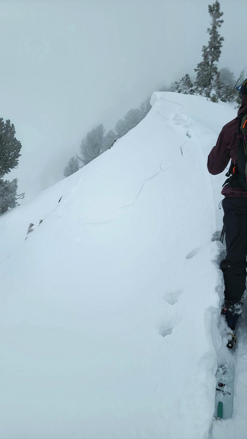 Hiking up the ridgeline on Mt. Raymond today we experienced multiple collapses and cracking on the sensitive wind slabs that formed from last nights wind.