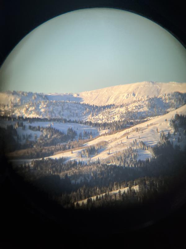 Massive slide on Cornice Ridge sometime in the last few days. Spotted from Beaver Mountain summit, grabbed a photo with a friend's binoculars. Several separate slopes involved, looked on maps to be easily 2000 feet wide. Likely 2 feet deep based on the amount of new snow we saw at beginner bowl over the first half of the weekend.